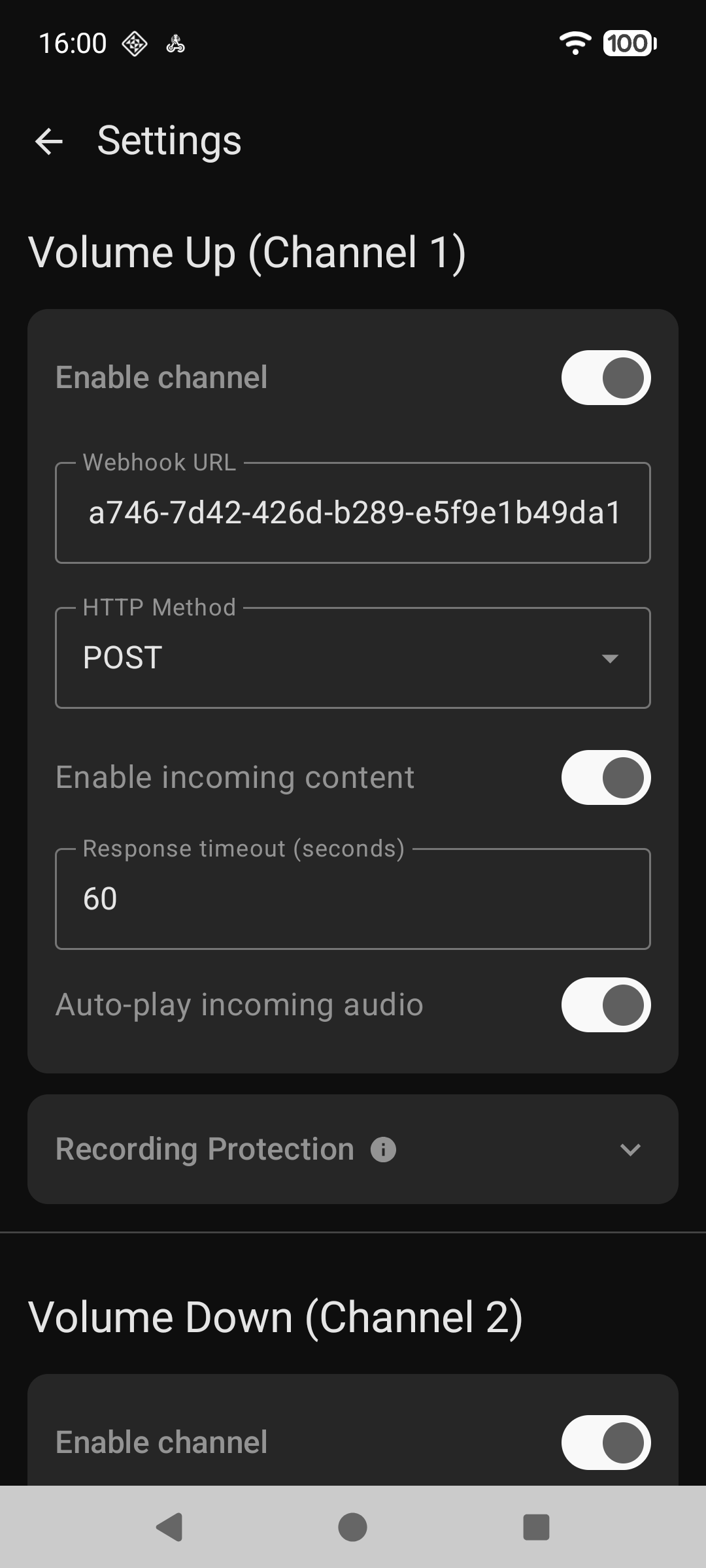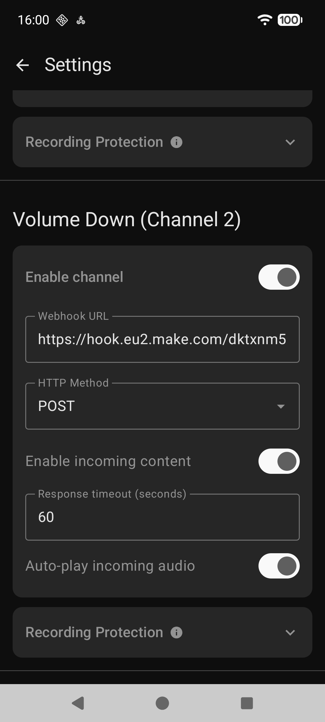 - Since the automation returns audio, enable both "Enable Incoming Content" and "Auto-Play Incoming Audio" options.