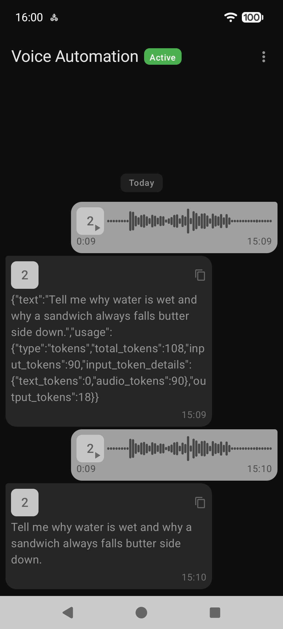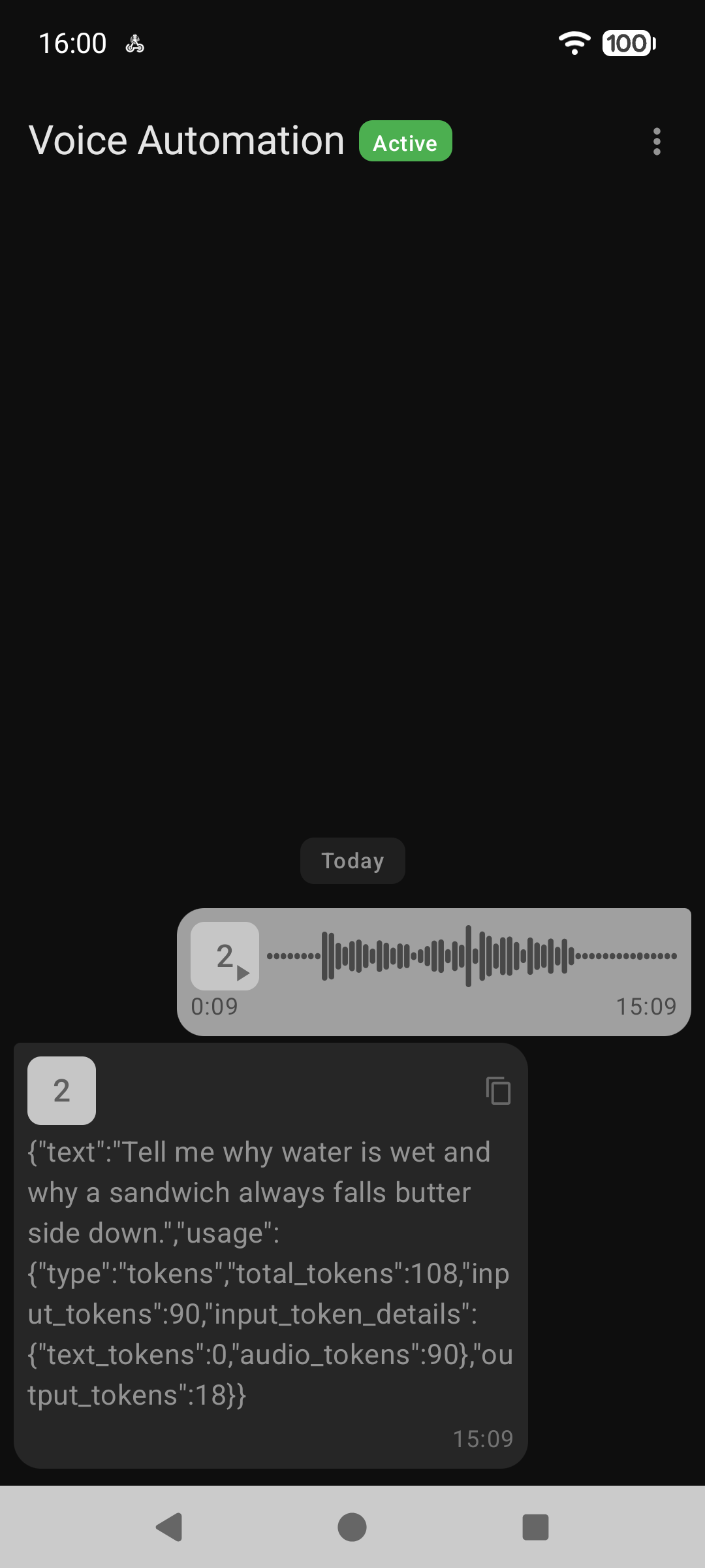 With the release of version 1.32.0 of the Action Button - Voice Automation app, the range of supported responses has been expanded. Prior to version 1.32.0, only audio responses were available (Content-Type: audio/*). Starting with version 1.32.0, the app supports the following text-based responses: